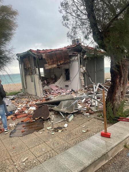 A seguito dell'esplosione avvenuta nella notte del 3 novembre 2025, causata da un tentativo di furto ai danni del bancomat installato nel manufatto situato a fianco della piazzetta denominata "Spiaggia per tutti" a Fossacesia, si è reso necessario procedere alla demolizione completa dell'edificio che ospitava la postazione ATM e i servizi igienici pubblici.